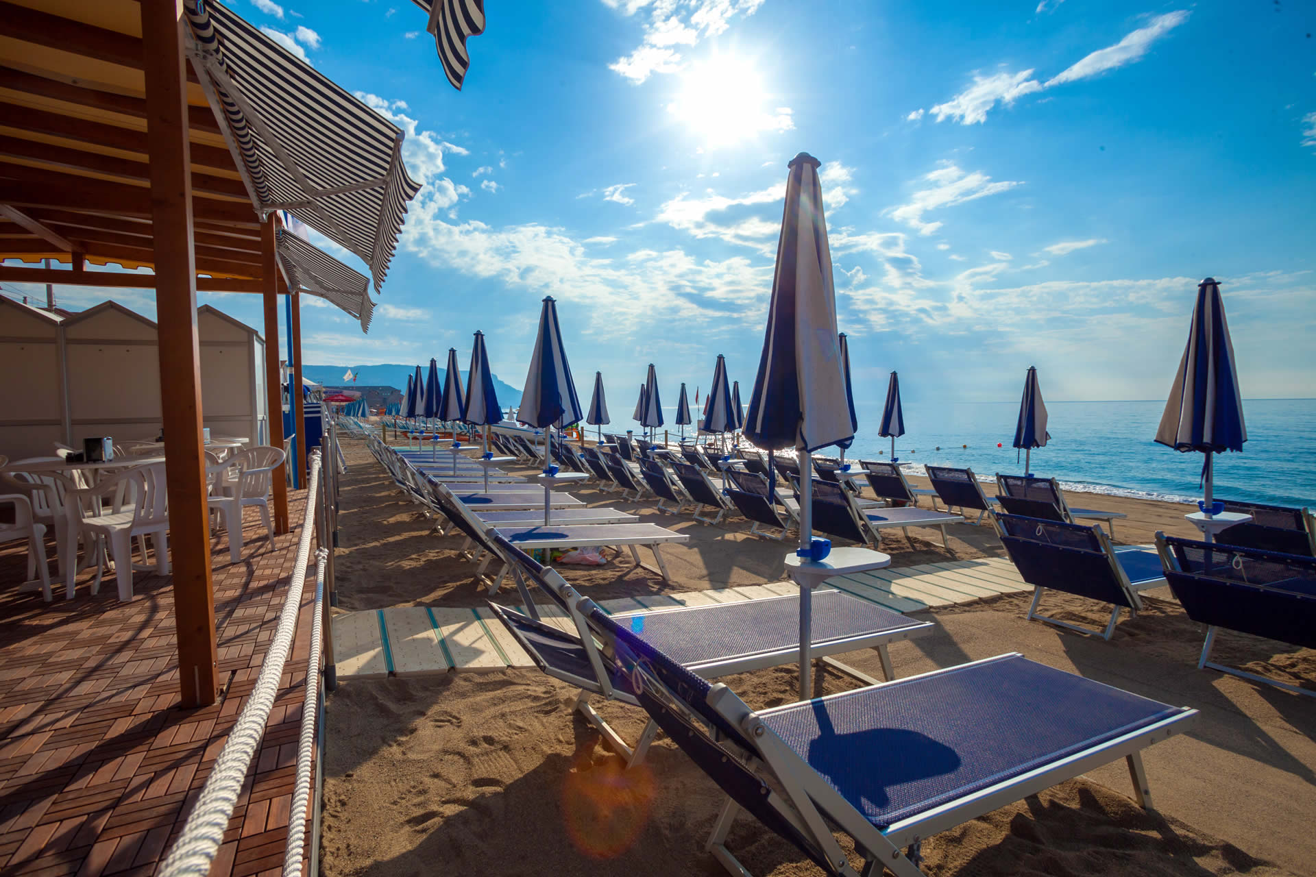 con ombrelloni e lettini da sole, l'ideale per abbronzarsi o riposarsi in totale relax .
